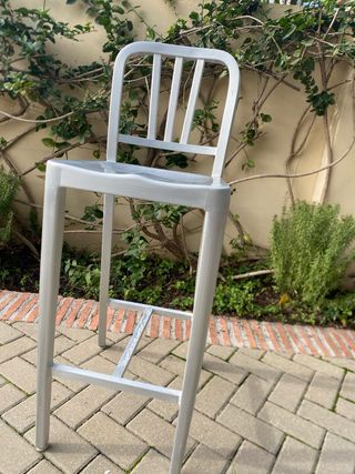 Conjunto de sillas de barra con un acabado plateado. - Diseño moderno y elegante. - Estructura robusta de metal. - Patas con protectores para el suelo. A recoger en Estepona.