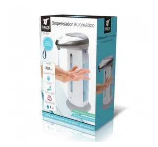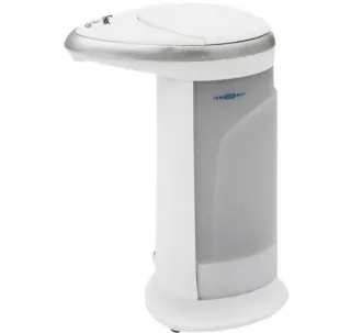 Dispensador de gel automático con un diseño moderno. - Acabado en color blanco y plata. - Fabricado en plástico resistente.