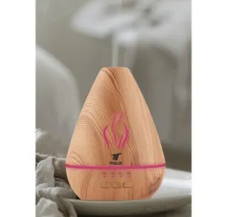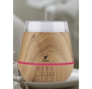 Humidificador con un diseño elegante que imita la madera y detalles transparentes. - Acabado en imitación madera. - Parte superior transparente.