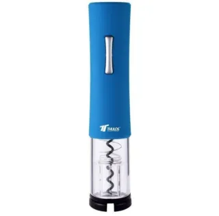 Sacacorchos eléctrico de la marca Thulos. CARACTERÍSTICAS Apto para la mayoría de botellas. Incluye accesorio para cortar la protección del tapón. Elegante y práctico.Efecto Soft-Touch. Alimentación: 1.5V*4 AA (no incluidas) Tensión nominal: 6V. Luz LED. Potencia nominal: 25W. Tamaño: Ø5.2*27.5 cm. - Diseño elegante en color negro. - Cuerpo transparente para ver el funcionamiento. - Mecanismo de metal y carcasa de plástico.