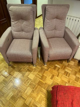 Vendo 2 sofás individuales reclinables automáticos, en perfecto estado y muy poco uso. Son muy cómodos, con respaldo alto y reposapiés reclinable, ideales para salón, zona de TV o descanso. Tapizado tela suave y resistente. Se venden juntos o por separado. No tienen manchas, roturas ni olores. Siempre en hogar sin mascotas. Precio por sepaso 150 euros Precio por los dos juntos 250 euros.
