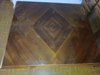 Descripción: Vendo espectacular conjunto de muebles de salón en madera de cerezo, con un diseño robusto y elegante. Todo está muy bien cuidado y ofrece una gran capacidad de almacenaje. El pack incluye: Mueble de Salón Modular: Gran vitrina con puertas de cristal y baldas, mueble bajo para TV con cajoneras, módulos superiores y estanterías laterales. Ideal para organizar vajilla, libros y dispositivos electrónicos. Mesa de Centro Elevable: Mesa a juego muy funcional. La tapa se eleva para poder comer o trabajar desde el sofá cómodamente, y cuenta con cajones inferiores para guardar mandos o revistas. Características: Material: