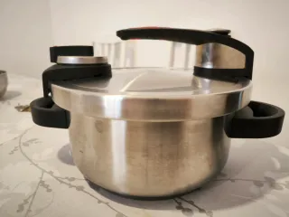 Olla rápida de la marca Bra, con un diseño moderno y funcional. - Acabado en metal y Baquelita. - Color plateado y negro.