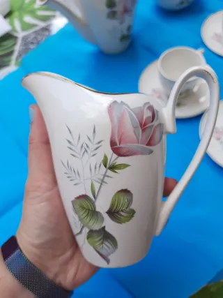 Juego de café porcelana flores rosas