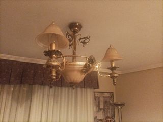 Lámparas de salón doradas y de cristal
