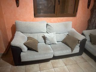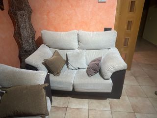 Sofá 3+2 plazas tela beige y marrón
