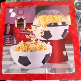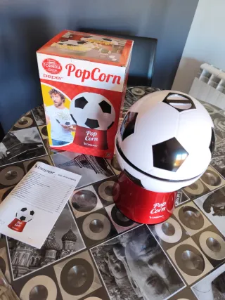 Máquina de palomitas con un divertido diseño de balón de fútbol. - Diseño temático de fútbol. - Incluye manual de instrucciones. - Nunca se ha usado.