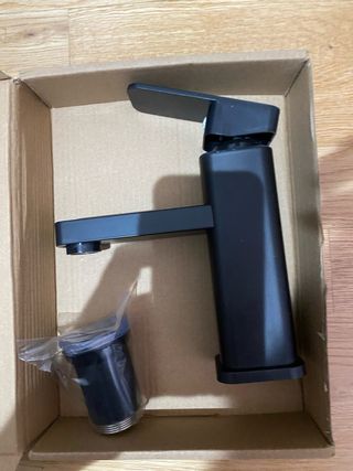 Grifo de baño con acabado en negro mate. Su diseño moderno se adapta a diferentes estilos de baño. - Fabricado en metal y plástico de alta calidad. - Incluye accesorio adicional. Se compro y no se uso