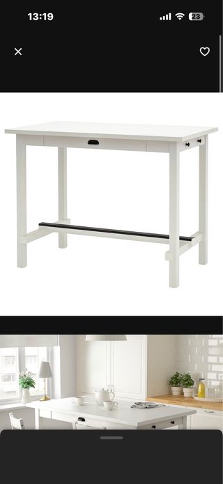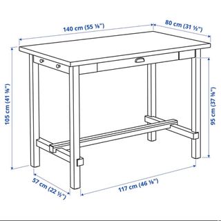 Mesa de comedor de Ikea con un diseño moderno y funcional. Perfecta para tu hogar. - Medidas: 140 cm (largo) x 80 cm (ancho) x 95 cm (alto). - Profundidad del cajón: 57 cm. - Altura hasta el travesaño: 117 cm.