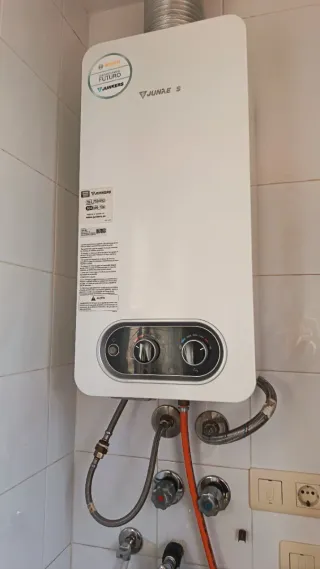 Caldera de gas butano Junkers. *Con garantía. Encendido automático.Usado muy poco.Se vende por cambio al termo eléctrico.Accepto ofertas. - Color blanco y detalles plateados. - Dos mandos giratorios para ajuste de temperatura y potencia.