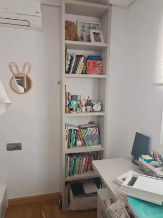 Estantería de madera con un diseño moderno y funcional. Combina a la perfección con cualquier estilo de decoración. - Acabado en blanco y detalles en madera. - Estructura robusta y duradera. - Medidas (Ancho.xFondoxAlto) 1010x355x1365 - Medidas hueco 320x320x320 - Alguna marca del uso pero en muy buen estado - Se entrega desmontada. - Empaquetada y lista para enviar/entregar. Tengo otra estantería igual pero de 2 cuerpos. Entrego en mano en Castellón de la plana o envío/pago por Wallapop.