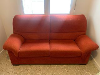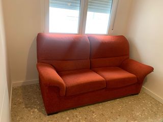 Sofá de dos plazas como nuevo, tapiceria en perfecto estado. - 185x80 (brazos vuelan +10cm) - Tapicería de tela. - Color rojo/anaranjado.