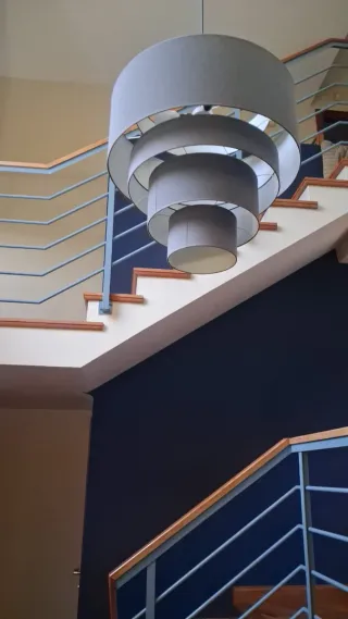 Elegante lámpara colgante con un diseño moderno y escalonado. Aporta un toque de estilo a cualquier espacio. - Estructura de metal. - Pantallas de tela.