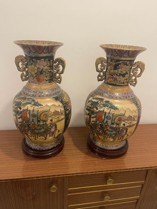 Par de jarrones de cerámica Satsuma