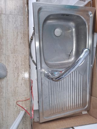 Conjunto de fregadero de cocina con grifo. - Fregadero de metal. - Grifo de metal.