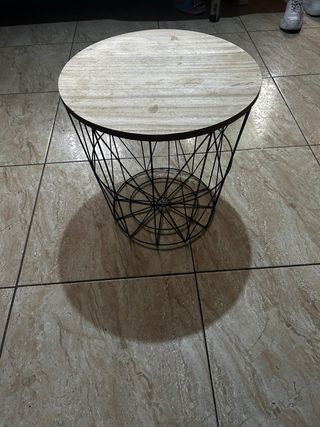 Mesa auxiliar redonda metal y madera