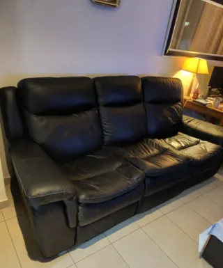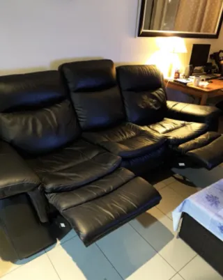 Sofá de tres plazas con un diseño moderno y elegante. - Tapicería de piel. - Color negro intenso. - Asientos reclinables para mayor comodidad. Tiene 2 años , costo 2800€