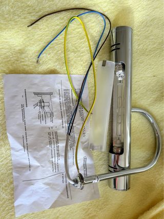 Aplique de luz lineal acabado en cromo. Nievo a estrenar y en su caja original. Incluye todo lo necesario para su instalación. Largo aproximado: 30 cm 4 Conexión directa a 230 V. Completamente nuevo, sin usar.
