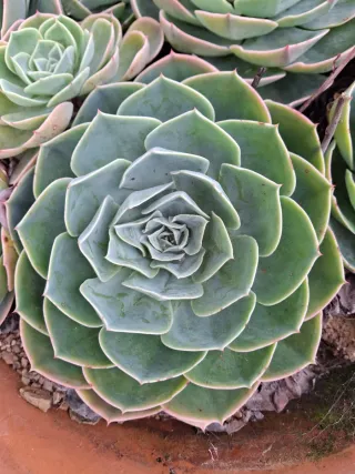 Planta suculenta Echeveria elegans, conocida por sus rosetas de hojas carnosas y su belleza ornamental. - Hojas de color verde azulado con bordes rosados. - Patrón de crecimiento en roseta compacta. - Ideal para coleccionistas de suculentas.
