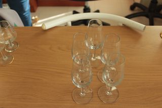 Conjunto de cinco copas de cristal, perfectas para degustaciones o aperitivos. - Diseño elegante y delicado. - Base estable para mayor seguridad.