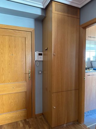 Vendo mueble de salón de madera en muy buen estado, compuesto por zona de TV, vitrina alta con puerta de cristal, cajoneras y armarios. Medidas aproximadas: • Ancho total: 2,95 m • Altura vitrina: 2,04 m • Fondo: 50–55 cm La televisión que aparece en la foto es de 55 pulgadas, para que se aprecie mejor el tamaño real del mueble. Características: • vitrina con baldas de cristal • varios cajones y armarios • amplio espacio de almacenaje • mueble robusto, funcional y decorativo