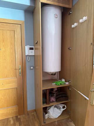 Calentador termo de gran capacidad. - Color blanco. - Diseño cilíndrico vertical.