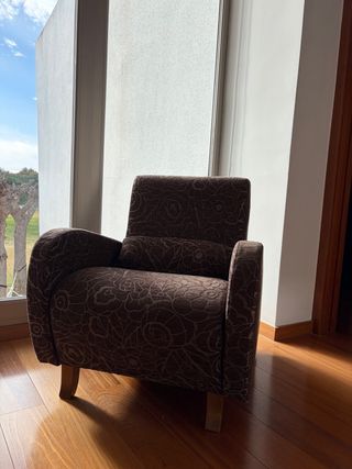 Acogedor sillón de lectura, relax... con un bonito estampado floral. - Tapicería de tela. - Patas de madera.