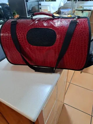 Transportín con un diseño llamativo en imitación piel de reptil. - Asa superior acolchada para mayor comodidad. - Correa ajustable para llevar al hombro. - Ventana de malla para ventilación.