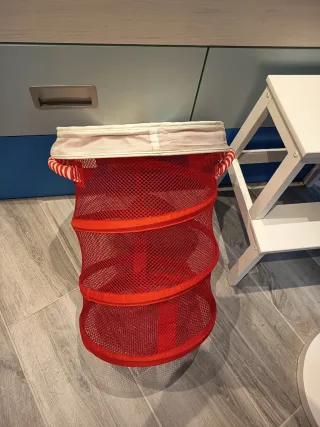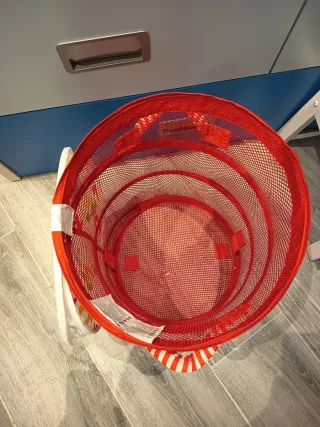 Práctico cesto para guardar juguetes o ropa. - Diseño plegable para fácil almacenamiento. - Asas para un transporte cómodo. - Malla transpirable.
