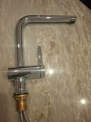 Grifo para fregadero modelo Ona de la marca Roca. Diseño moderno y funcional. - Acabado cromado brillante. - Caño giratorio. - Mangueras de conexión incluidas. Regalo grifo osmosis nuevo
