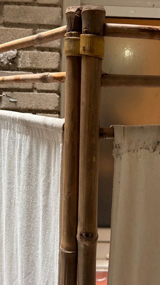 Vendo biombo de bambú ideal para terraza, balcón o interior. Ha estado en exterior, por lo que la tela necesita una buena limpieza o sustituirse, como se aprecia en las fotos. La estructura de bambú está firme y en buen estado, sin roturas, estable y funcional. Es una pieza decorativa y práctica para separar ambientes, dar privacidad o proteger del sol. Perfecto para quien quiera renovarlo fácilmente cambiando la tela o lavándola. Se vende tal cual está.