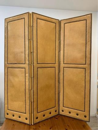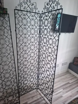 Recogida en mano zona Hortaleza,Madrid. Biombo separador de ambientes con tres hojas. Ideal para dividir espacios de forma práctica y elegante. - Estructura metálica. - Paneles de tela. Las medidas de caja hoja son de 162 de altox 58 de ancho. Son 3 hojas.