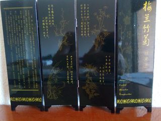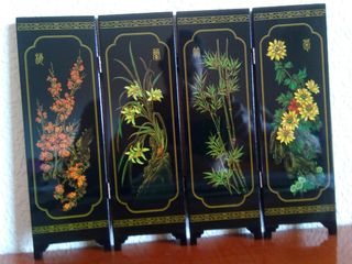 4 hojas pintura sobre laca. 24 cms alto por 31 cms largo total. Estuche y certificado Ideal para regalo. En origen cuesta más