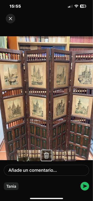 Biombo madera con 4 baldas. Mide 1.63 cm de alto y cada balda tiene un ancho de 36 cm. el grosor de cada balda es de 3 cm. Esta en Rocafort (Valencia)