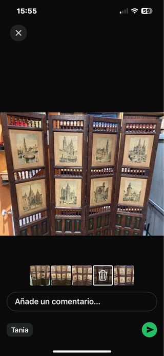 SIN ABRIR Biombo marco de fotografias, se compone de 4 paneles en los que caben 8 fotos de distintos tamaños (10x15 o 5x5), se unen con anillas para hacer una especie de cortina que sirve para dividir espacios.