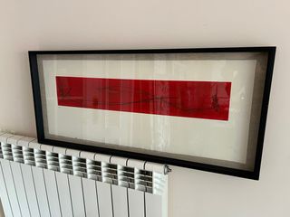 Grabado original de Ana Alberca sobre papel. - Obra de arte con detalles en rojo y negro. - Marco negro incluido. - Edición limitada 14/60 - Título “Rojo 35” - Año 2005 - Medias 38x92