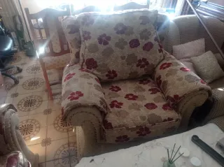 Sofás individuales con un diseño floral en tonos beige y rojo. Aporta un toque de color y estilo a cualquier estancia.impolutos - Tapicería de tela. - Cojín decorativo a juego.