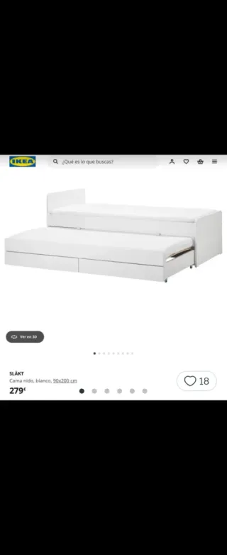 Cama nido de Ikea con un diseño moderno y funcional.Con dos cajoneras y 2 colchones de espuma tambien de ikea la cama tiene dos somieres de madera, el de la cama auxiliar de abajo tiene una lama rota arreglada (apenas se nota) .Se regala escritorio y silla infantil , color blanco y azul , y una estanteria/libreria de dos cajones y dos huecos como la de última foto pero de dos cajones.Medidas de la cama exactas con la estructura de madera completa.Madera buena. Precio negociable,recogida en Boiro.