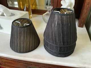 Conjunto de dos tulipas para lámpara. - Diseño plisado. - Aros en la parte superior e inferior.