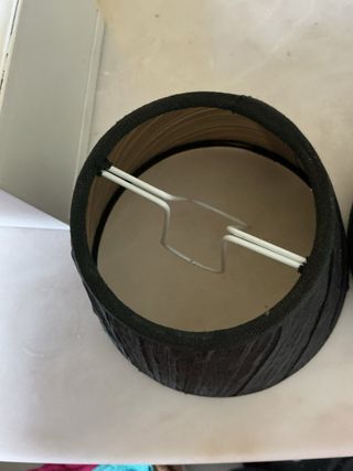 Conjunto de dos lámparas de mesita de noche, perfectas para añadir un toque de luz a tu habitación. - Una lámpara tiene la pantalla gris y la otra beige. - Ambas están fabricadas con metal y tela. - Incluye las bombillas.