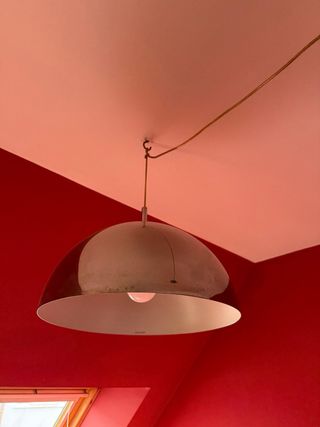 Conjunto de dos lámparas de techo con un diseño moderno y elegante, perfectas para tu cocina. - Acabado en cristal y metal. - Combinación de colores negro y rojo. Precio por las 2 juntas: 60€ Precio sueltas: 35€ cada una