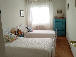 Se vende conjunto de dormitorio con dos camas individuales de 90 cm., cómoda 70 x 45 x108 cm, mesilla 50 x 35 x 54 cm., colchones, almohadas y colchas. No se realiza envío. - Dos camas de 90 cm. - Cómoda de color azul. - Mesilla de noche a juego