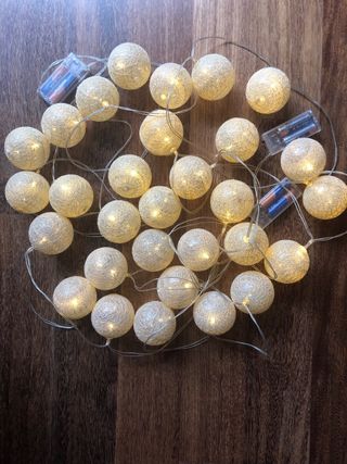 3 guirnaldas decorativas de bolas luminosas para Navidad, otras festividades o solo decorativas. 30 bolas en total. No incluye pilas. 2, 10 m. aproximadamente cada una.