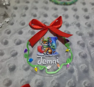 Bola de nieve personalizada con diseño navideño. - Incluye nombre personalizado. - Ideal como adorno o regalo.