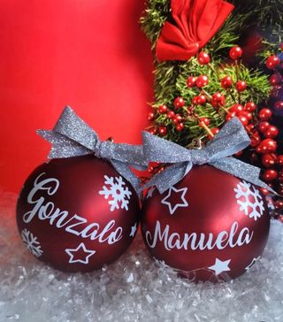 Bolas de navidad personalizadas para tu árbol o para colgar donde quieras, elige tu nombre o el de tu mascota, el color que más te guste y listo. Puedes pedirlos en diferentes colores, con diferentes motivos navideños... siempre a tu gusto, pregunta sin compromiso.