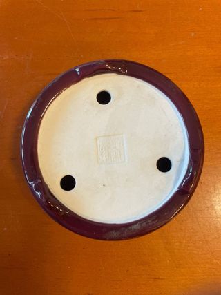 Maceta de cerámica de estilo japonés, ideal para bonsáis. Su diseño combina un esmalte púrpura/granate de alta calidad con sello de autor en la base. - Tres orificios de drenaje. - Sello distintivo en la base.