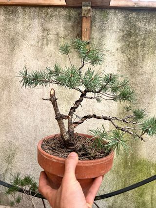 Bonsai pino cultivado desde semillas en akadama y kiriu nebari con corteza y personalidad y gordito