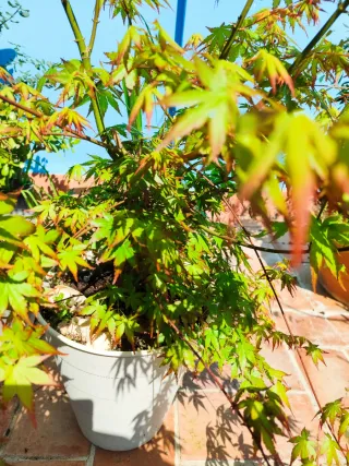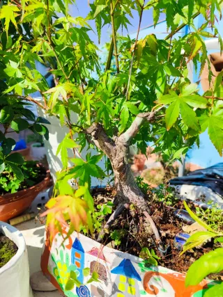 Precioso bonsái de arce japonés, ideal para coleccionistas o amantes de la jardinería. - Planta de interior o exterior. - Hojas características del arce japonés.