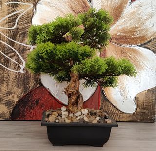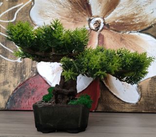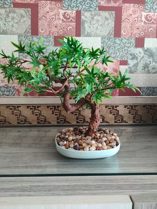 Bonsai Artificial realizado a mano en madera y hojas de Plástico, dura toda una vida sin regar.