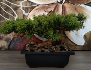 Bonsai artesanal realizado en madera tratada y plástico, dura toda una vida prácticamente sin mantenimiento.
